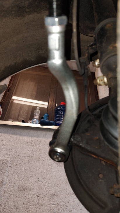 Po odstávce vozu a čekání na díly jsem se vrhnul do opětovné montáže. Výrobek už na první pohled vypadal profesionálněji. Obvzláště provedení samijistících matek. Staré kuláky se musely odřezat. Pozor na levou a pravou stranu. U obou ramínek jsem nastavil 24,4mm a jel na zkušební jízdu. Bouchání a klepání bylo konečně pryč. No hurá. Auto mělo mírně hnutý volant doprava. Srovnal jsem volant a už pohým okem byla vidět, že levé kolo míří více do leva. Tedy přidal jsem na této straně otáčku a čtvrt. Volant nyní mířil zcela rovně kola mírně do středu vozu. Konečně bylo řízení jako dřív. Zbytek už se doladí na Geometrii až proběhnou všechny výměny zbylých vyběhaných věcí.